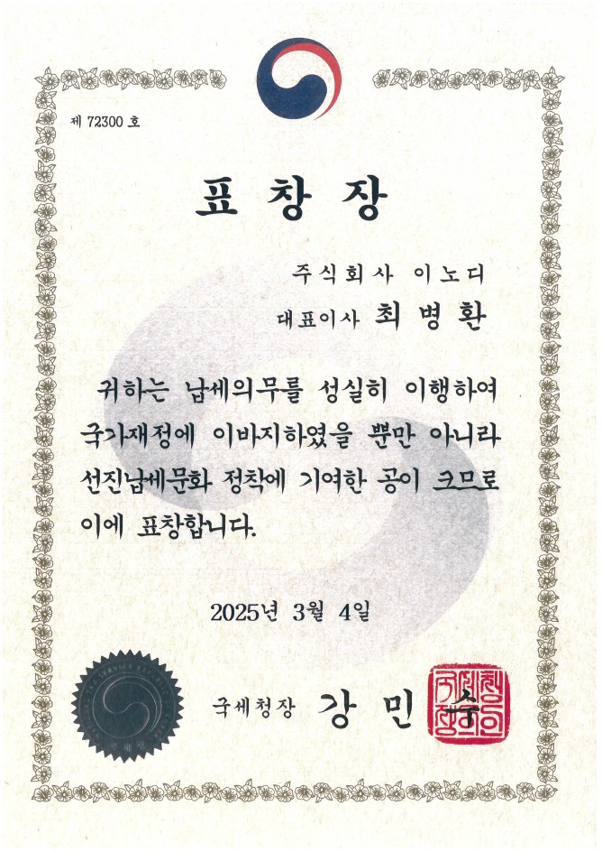 [Award] INOD Receives Commendation from the Commissioner of the National Tax Service as a Model Taxpayer (2025)
